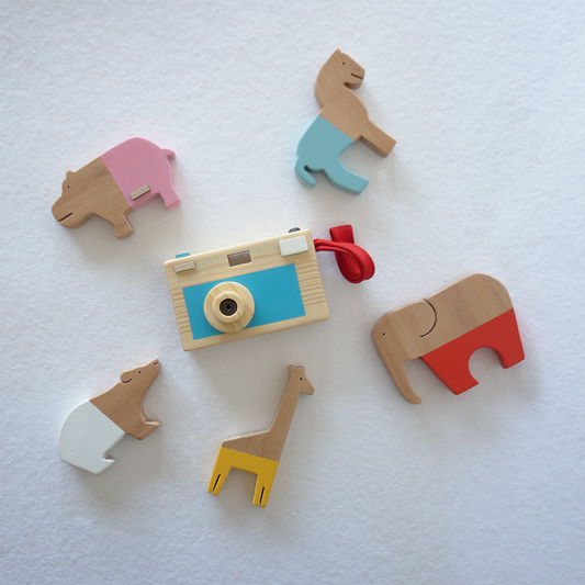 FIRST PHOTOS Bundle - Camera + Animal stacking set I 6 pc wooden play set I best for pretend play & imagination building I 2 years+