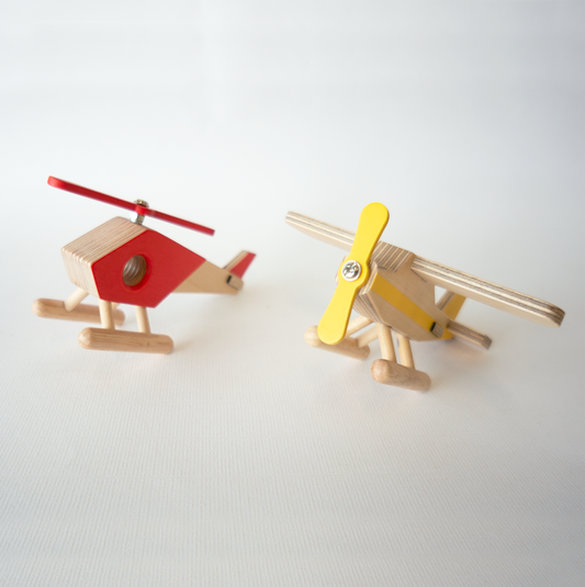 FLIGHT OF IMAGINATION Bundle - Amelia Airplane + Hopper Helicopter I 2 pc wooden toy set I best for pretend play & open- ended play I encourages creative development I 2 years+