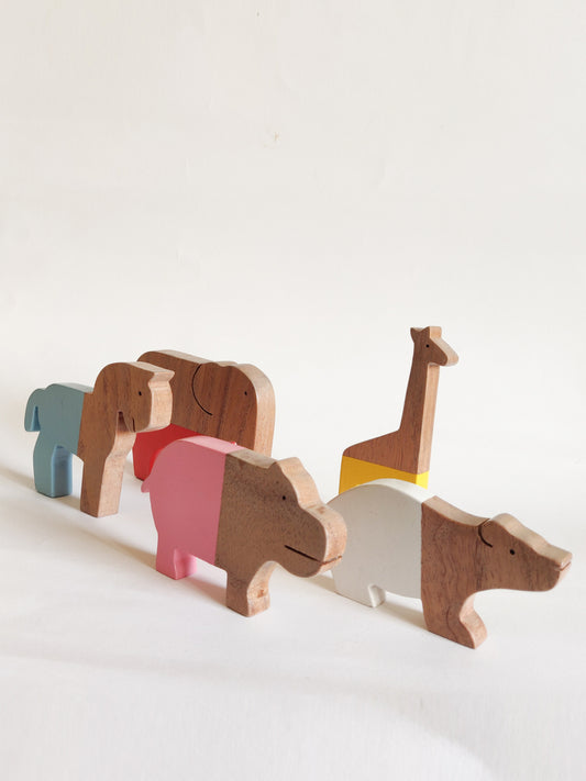 SAFARI ANIMAL SET I 5 pc wooden stacker toy I best for hand eye co-ordination & early learning I 6 months+ I
