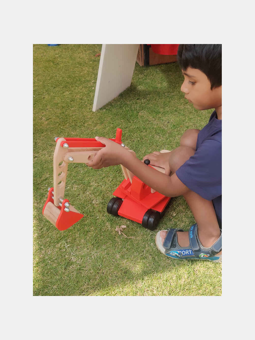 Somewhere in mid 2017, we made a big red earth digger for our nephew who simply loved it. We knew we were building something of value when we had an overwhelming response from family, friends and others at a local pop-up flea. What started as a passion project is now a full-fledged range of wonderful toys made for the young & young at heart! The story continues & we hope you join us for the joy ride!