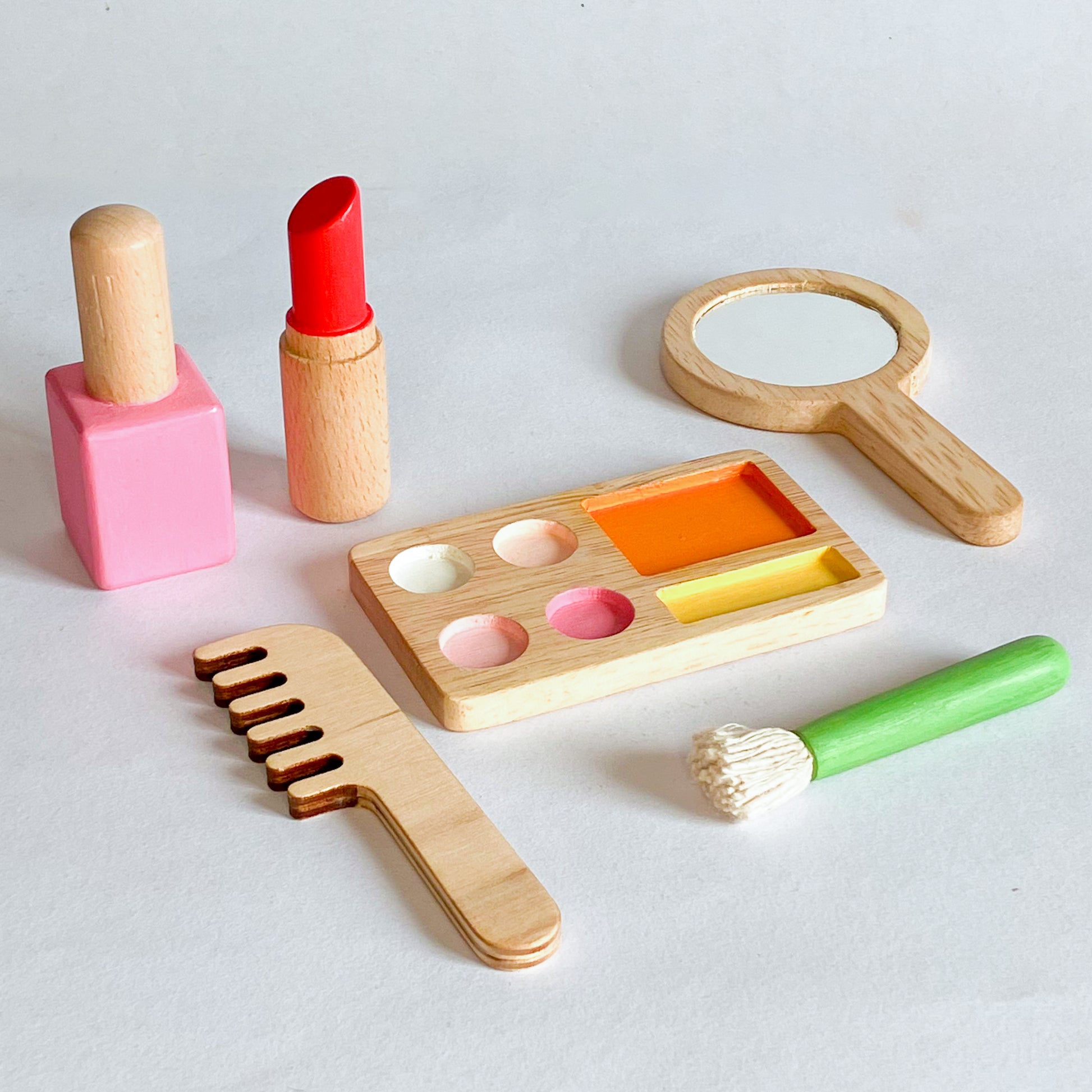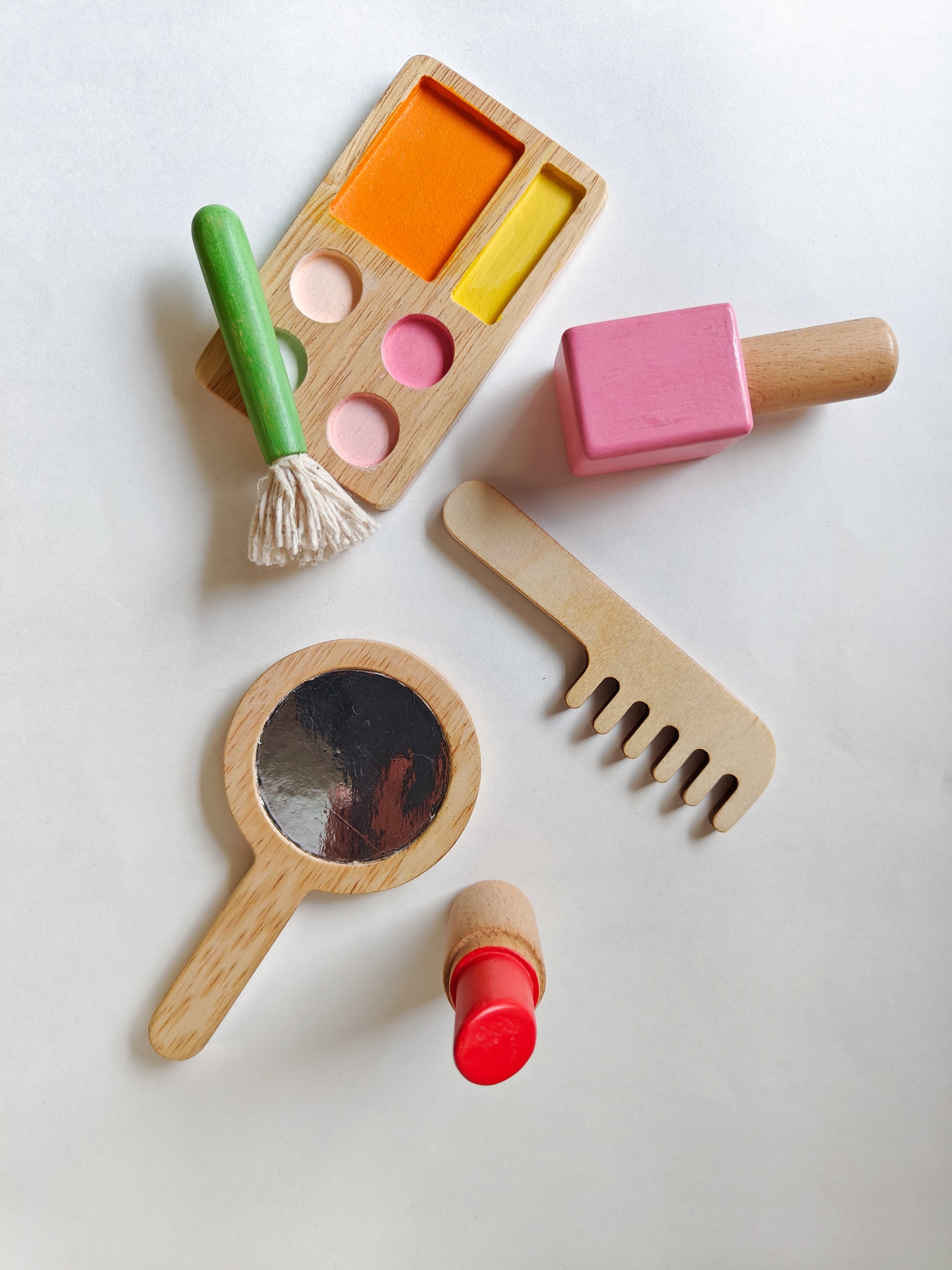 BEAUTY I Wooden toy make up set - Wooden 6 piece Make up kit I Pretend play set for kids I 3 years +